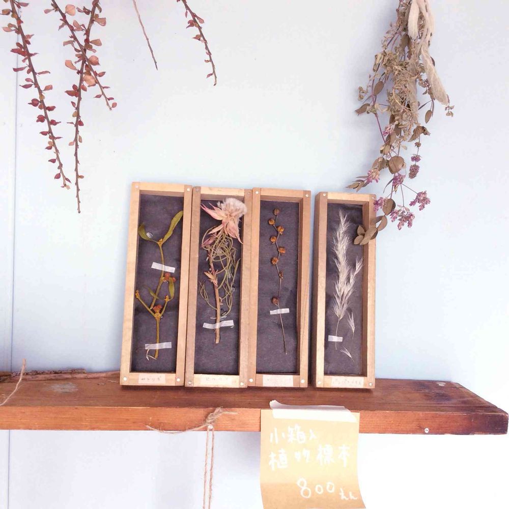 骨董屋さんでみつけた小さな箱にドライフラワーを入れた植物標本。