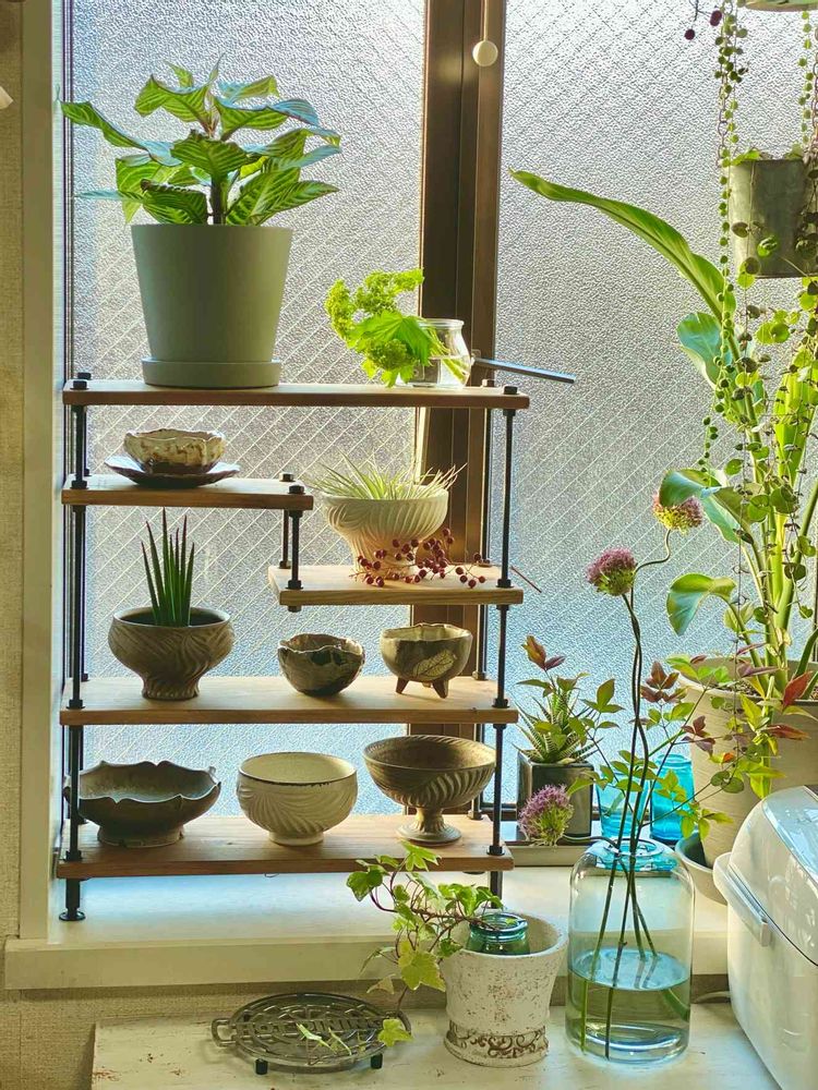 ステキな陶器や瓶に飾られて、植物たちも幸せですね✨
