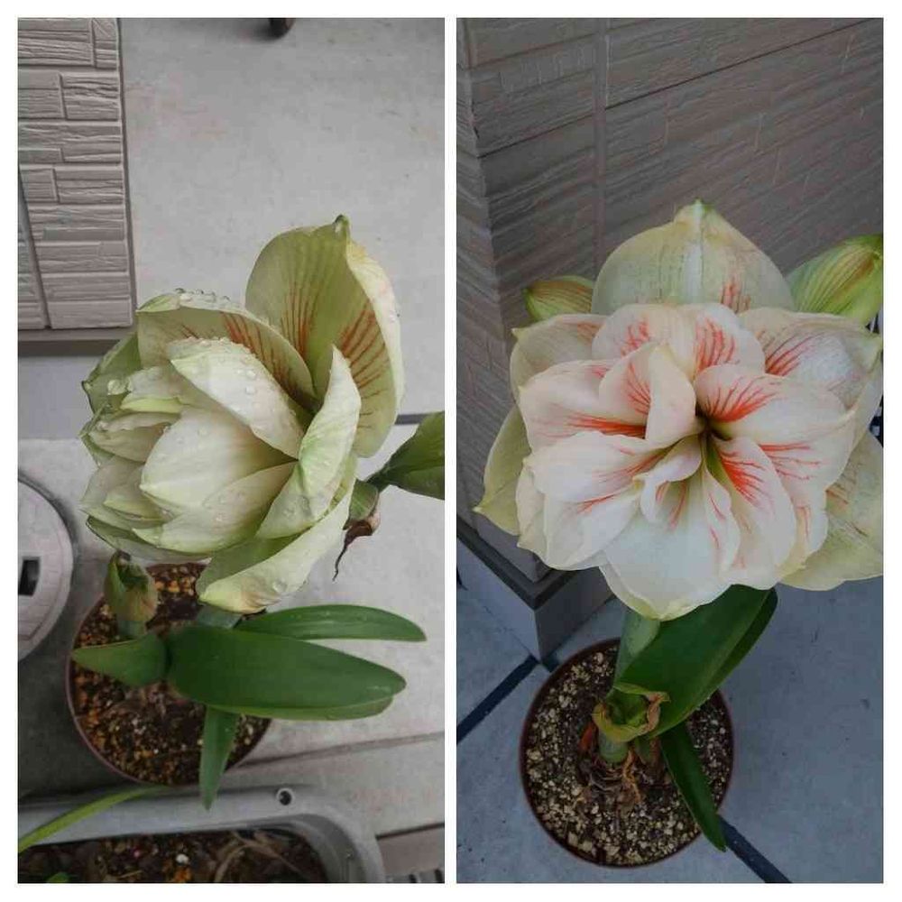 アマリリス、小ぶりのもの、一重の、八重の。それぞれに良さがありますね💞次々と咲くなんてとってもいいですね✨