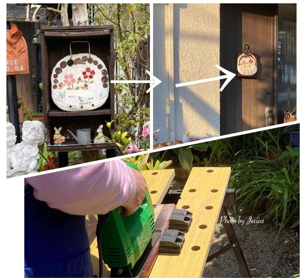 今度は木枠をつけて玄関ドア−🚪飾りに