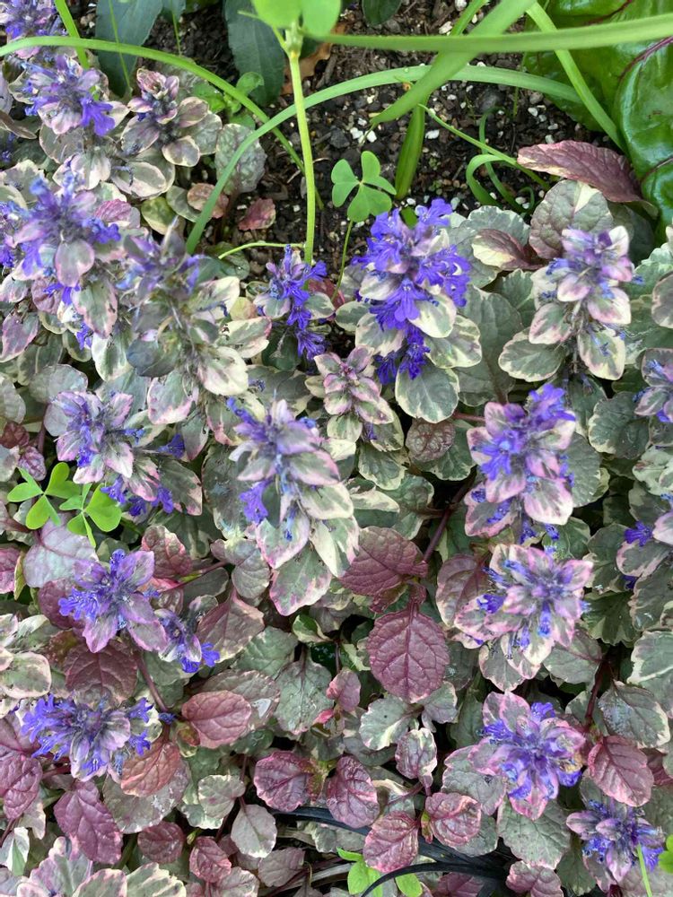 アジュガの葉っぱと紫の🟣立ち上がるお花、大好きです🍀😌🍀