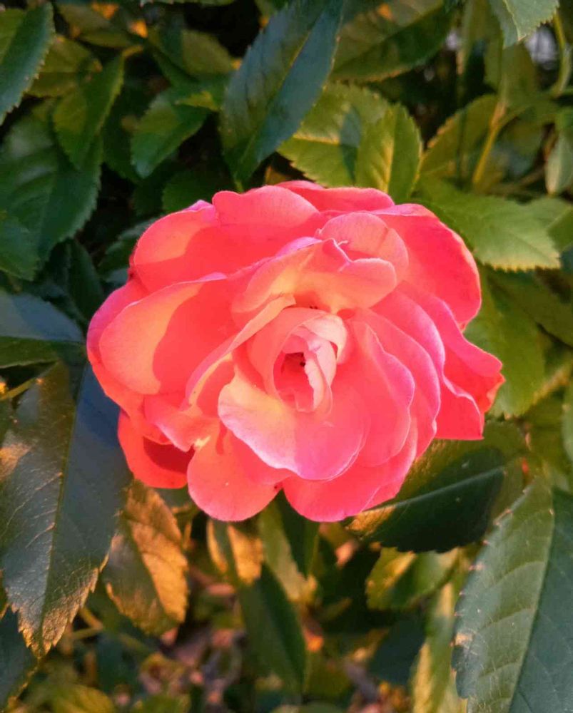 通りすがりに見かけました、夕日に照らされた赤い花☺️