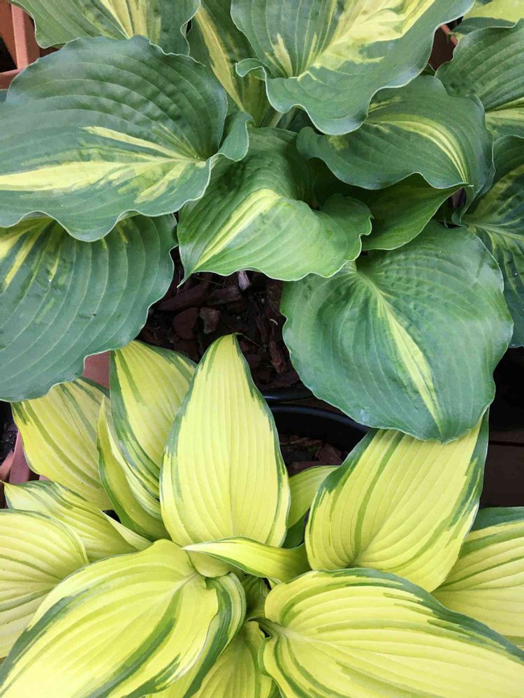 本日のhosta collaboration は、上からレイクサイドペイズリープリントと富士錦です。日米共演となりましたが、なかなかの組み合わせです。色合いが大きく異なる方が写真映えしますね。