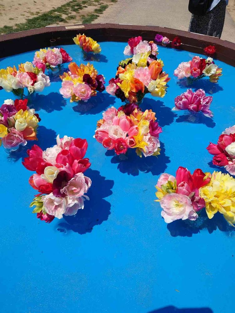 水に浮かべられたチューリップ🌷の花束💐が、素敵でした。