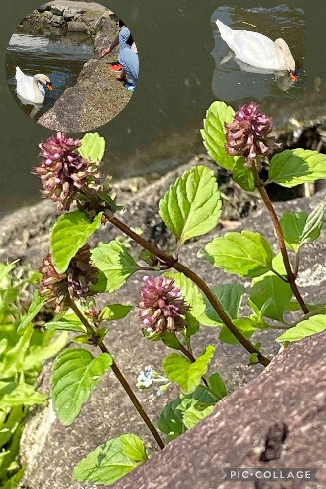 お堀の白鳥🦢さんを見ていると近くのおじさんが何やら撒いていて白鳥さんも鯉も寄ってきて食べていました😃