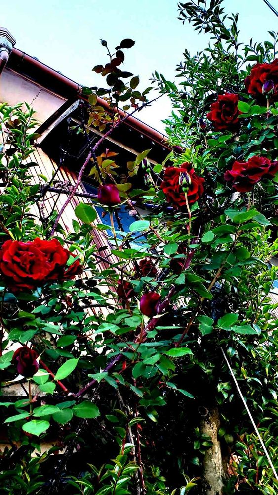 軒下まで茎が伸びた所も🌹が咲きました🎵✌️