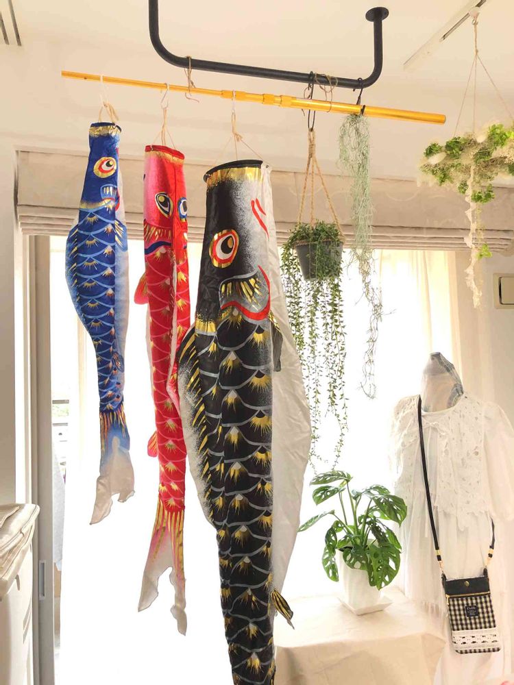 マンション用の鯉のぼりなのですが、付属品は処分して、のぼりと竿だけでこんな風に飾ると季節感も出ていい感じ🎶