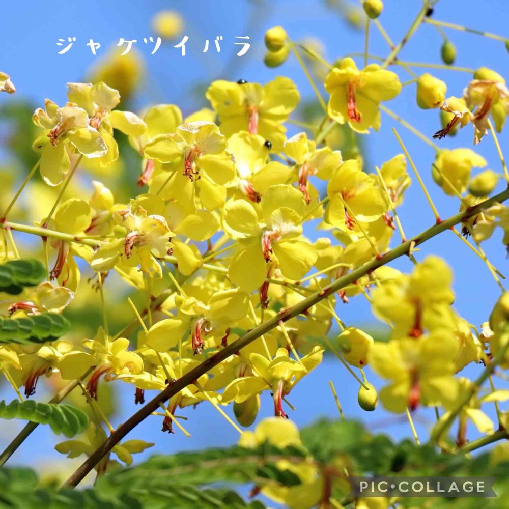 青空に鮮やかな黄色💛真ん中の赤がポイント🤗お好み焼きに入れる乾燥エビに見えちゃった😂