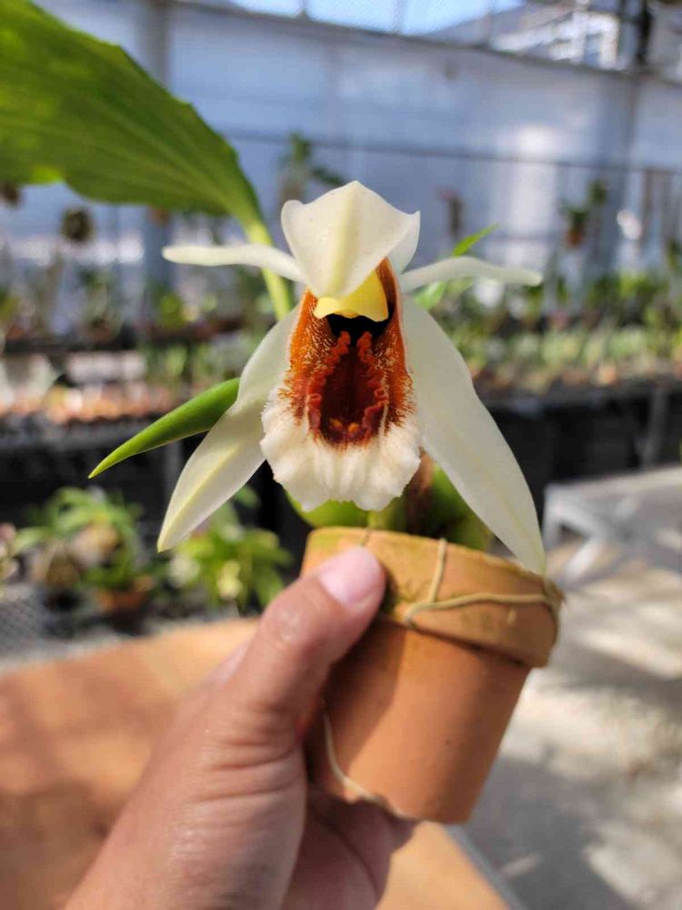 Coel. xyrekesと言う事でタイの蘭園から入手したフラスコから咲いた花