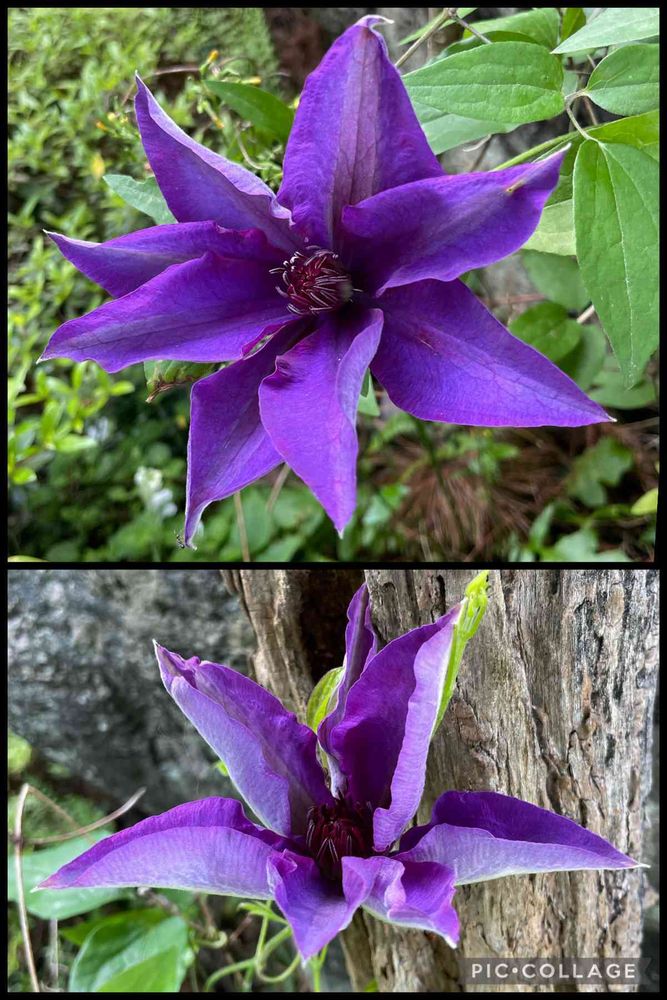 先程載せたセッコクのお花の近くのテッセン(クレチマス)のお花も咲き始めました💜