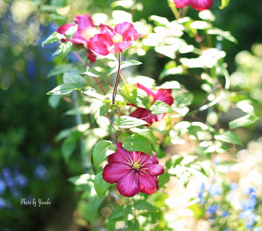 今日も爽やかな 朝・・日差したっぷりな庭にクレマチスが次々と開花・・
