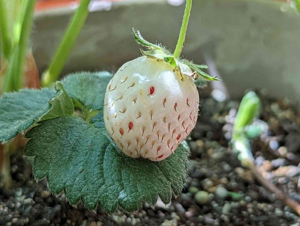 白いちごなので、種が赤くなってきて、香ってきたら食べごろです🍓