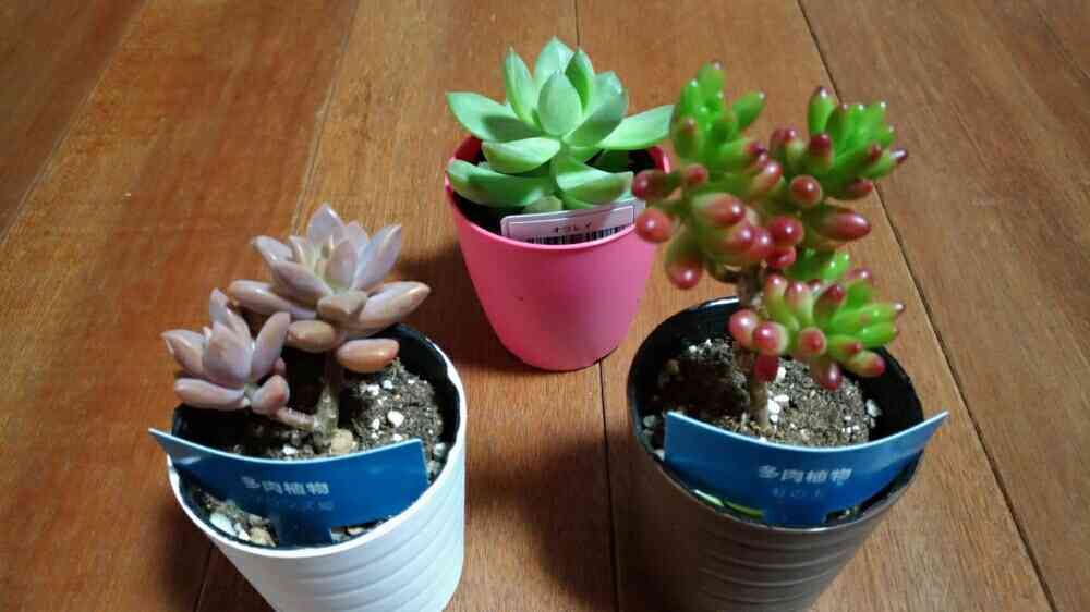 我が家に初めて来た多肉植物たち。100均でこんな可愛い植物が売ってるなんて!お部屋が明るくなります。
