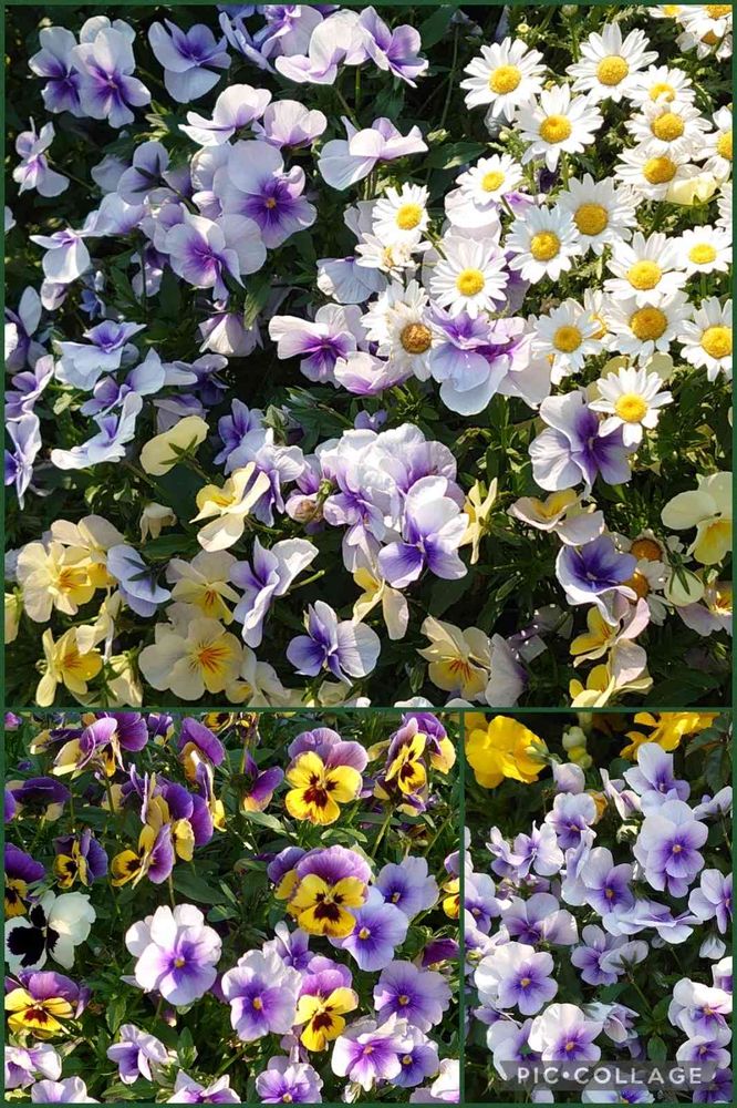 バス停近くの植栽に薄紫色のビオラが沢山咲いていて綺麗でした〜😄💟💟🤍💛💟