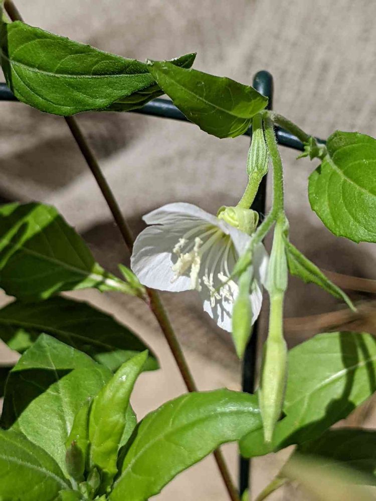 アカバナユウゲショウの白花が咲きました。赤花のこぼれ種から咲きました。