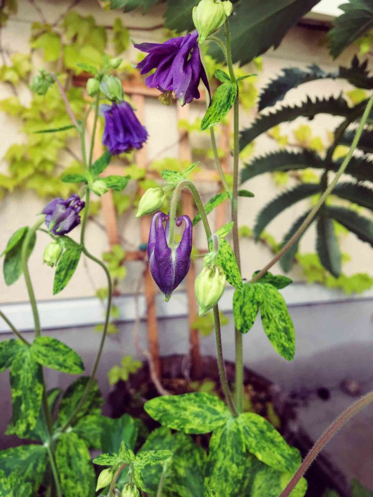 花見ることができました〜 初オダマキなのでどう育つのか想像できず変なとこに植えたもんだからしゃがんで他の植物の葉めくって覗かないと見られないというね😓