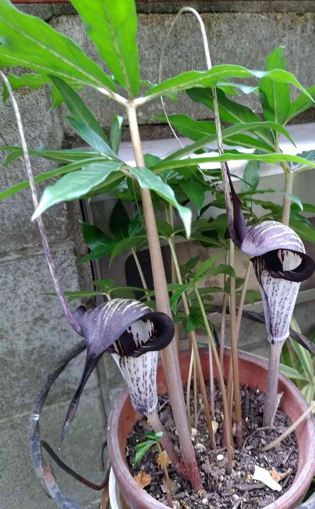 今年のウラシマソウは球根が殖えて地植えにしたり悩んでます💚🌿鉢植えが育てやすいです💜