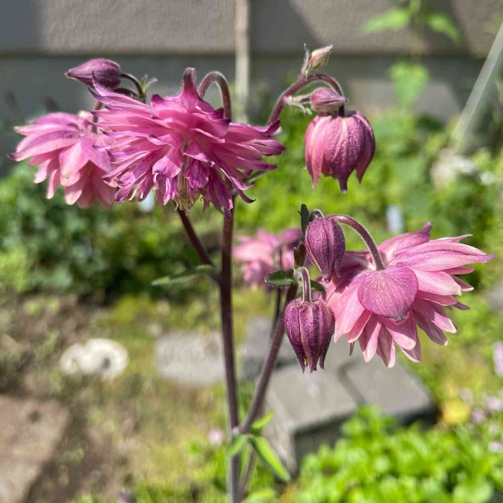 西洋オダマキ「ローズバロー」。昨年秋に苗を購入して、今年4月に地植え。