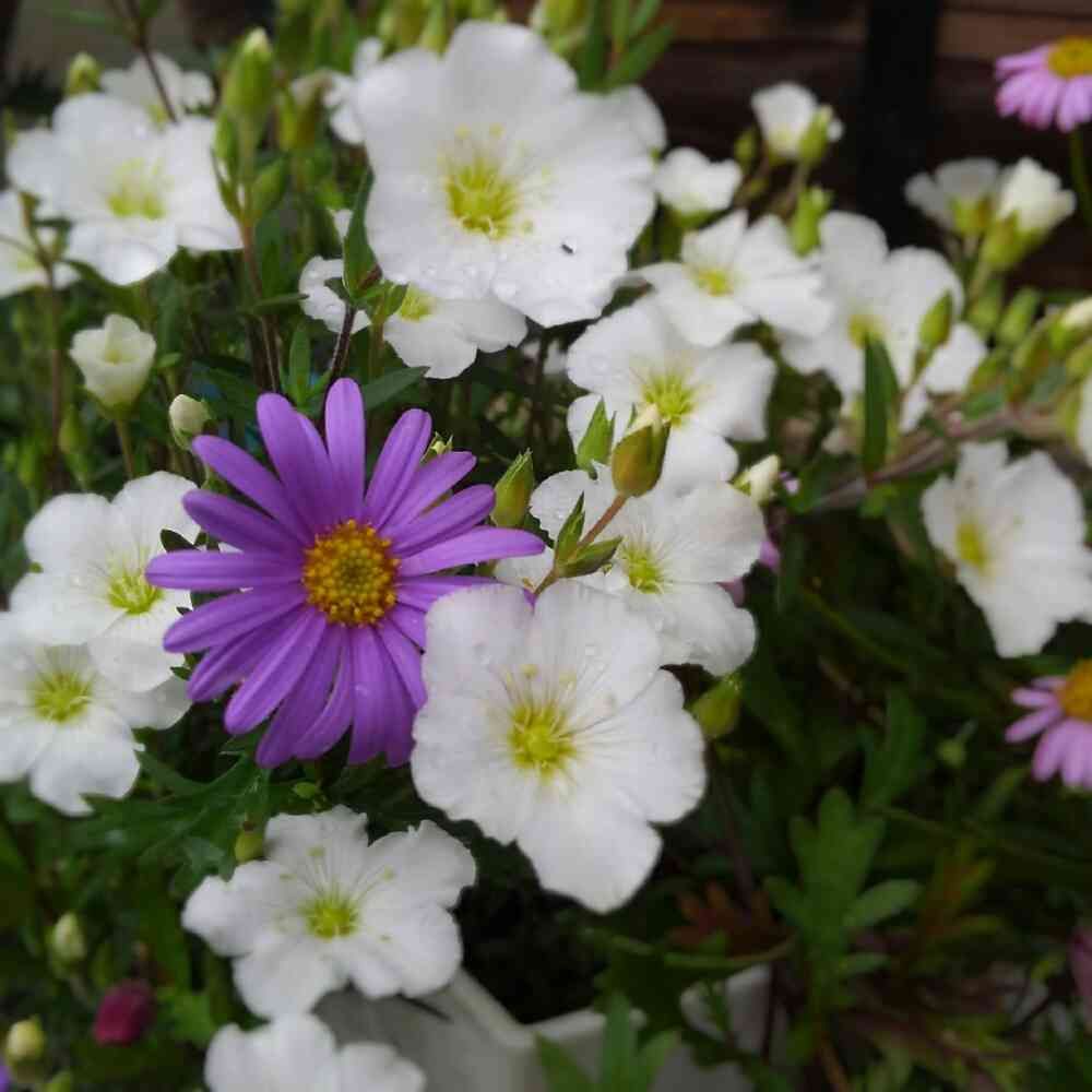 アレナリアモンタナとブラキカムブラスコ(*^^*)両方挿し芽っ子をポットに一緒に植えたものでーす。