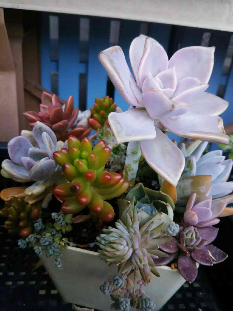 初期の寄せ植えで、こんなに大きくなる種類と知らず…鉢が小さい(´ºωº`)