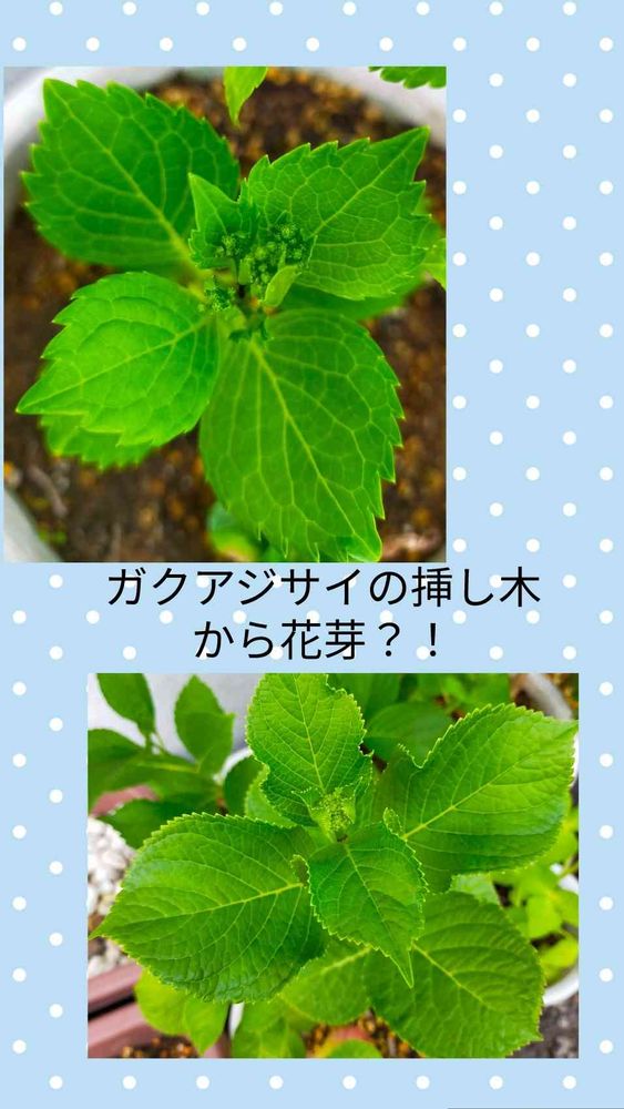 去年挿し木したガクアジサイから、花芽らしき物を発見👀!!