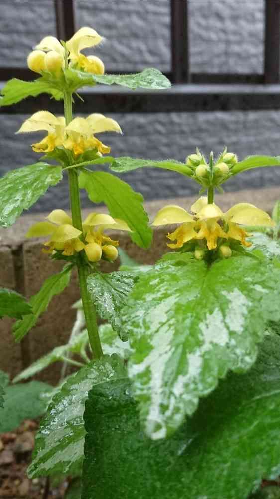 グランドカバーにラミウム植えたら 黄色の花が咲きました🎵