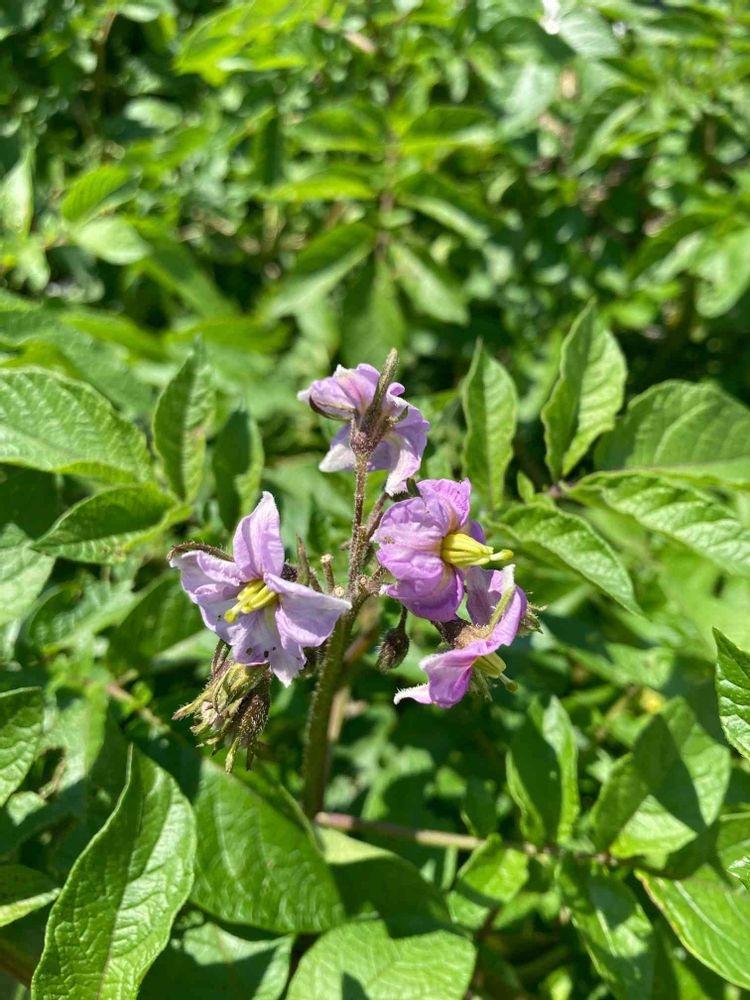 じゃがいもの花が咲きました。アンデスレッドはこんな色なんやね。