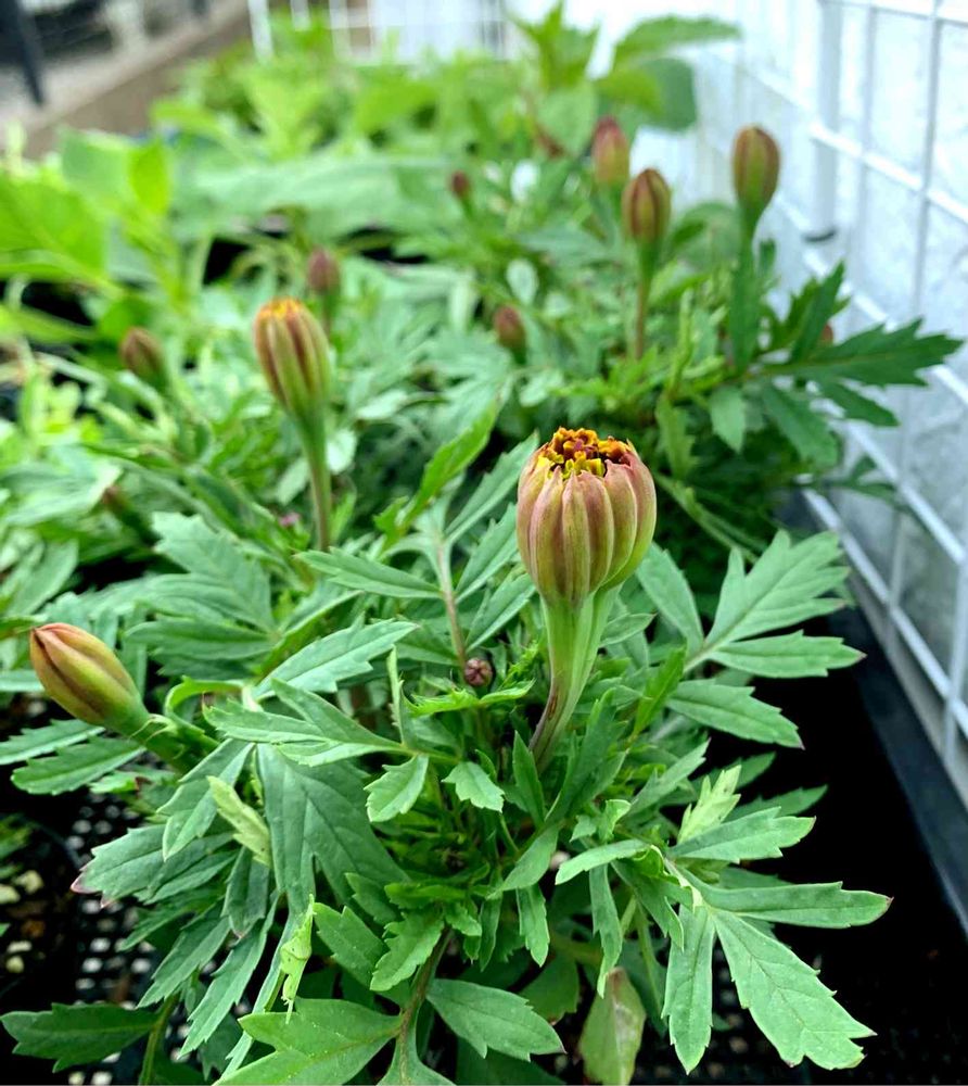 3月の種まきっ子達が順調に育って、もうすぐ咲きそうです。マリーゴールドは育てやすいですね!