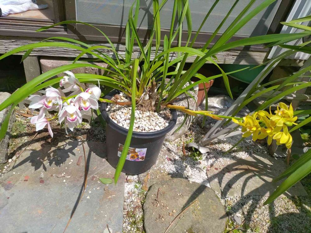 毎年同じ鉢で同じ株?から右左に色違いのお花をつけるシンビジュームですが、私が管理するようになり4年間で3度同じ咲き方で楽しませてくれる。もしかしたら父が生前株を寄植えしたのかもしれませんがどちらにしても見て楽しめます。