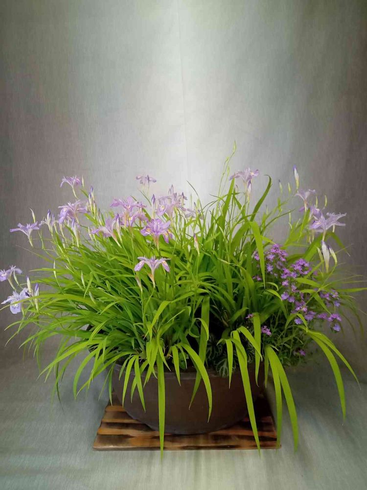 大きな鉢に姫シャガが一斉に咲き出しました🌿🌸