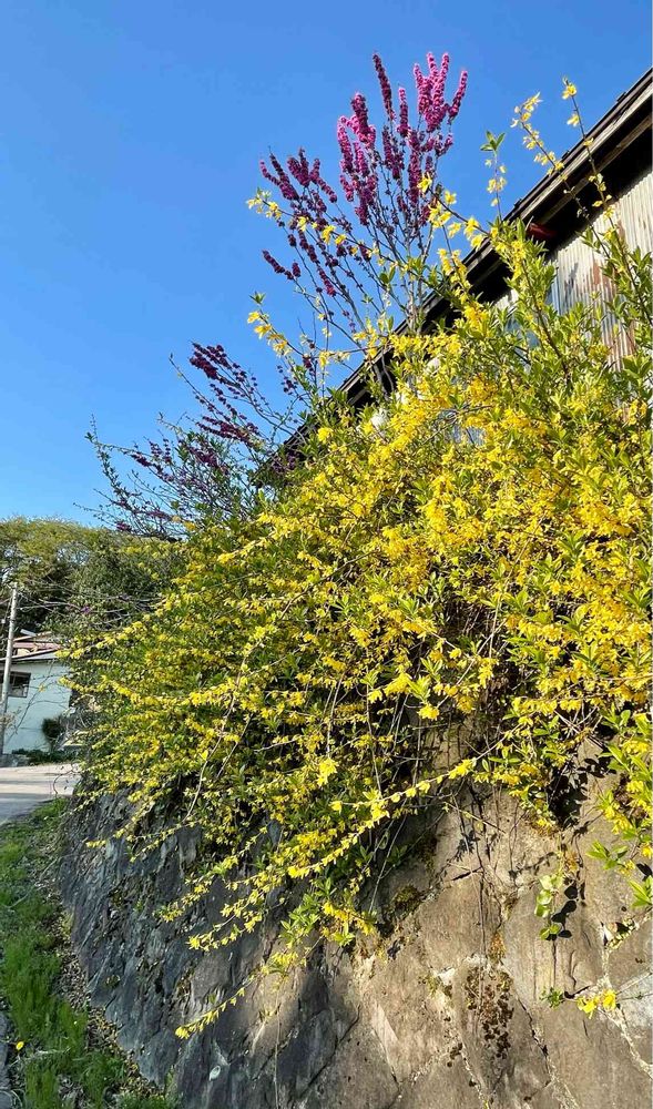 実家の物置の裏のレンギョウがみごとなので撮っていて気づいた…