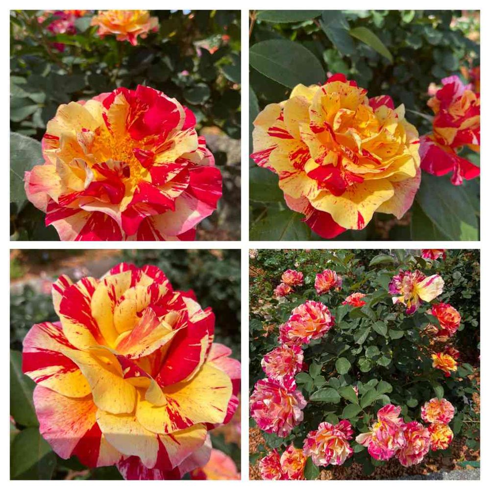 黄色に赤の絞り咲き ハッキリした色で 目立ちますね。