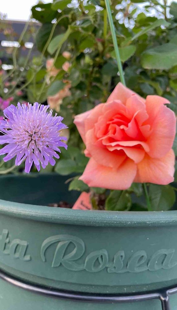 バルコニー/ベランダ,クナウティア アルベンシス,バラ アプリコットキャンディーの投稿画像
