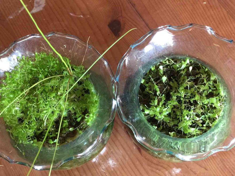 広口の容器で、盛り上がるようにミズゴケを入れた方がいいかも?