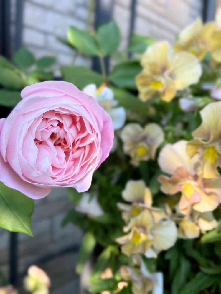 優しいピンク色に、ビオラのくすみイエローブラウンが良い感じ😍