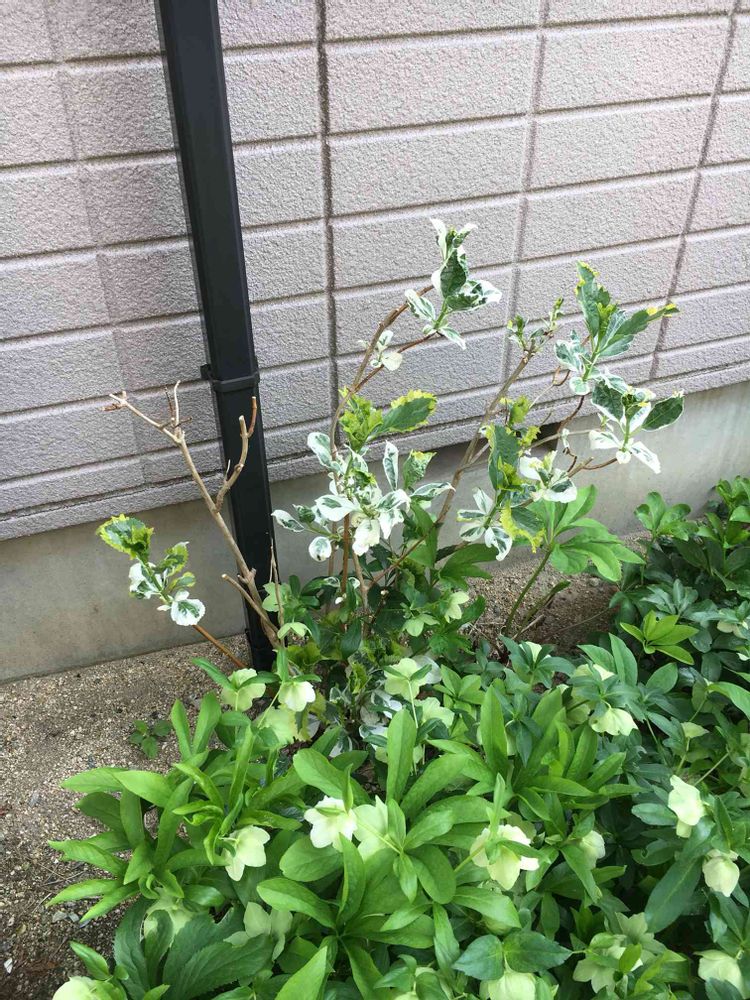 実家の北側に植えた斑入りアジサイです^ ^