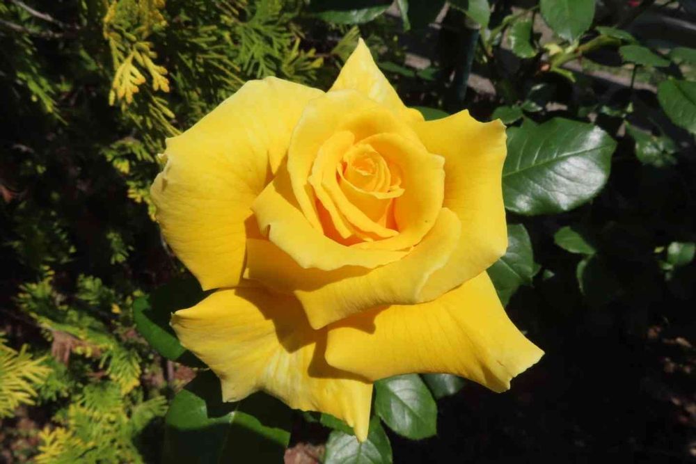 鮮やかな黄色のバラの花も