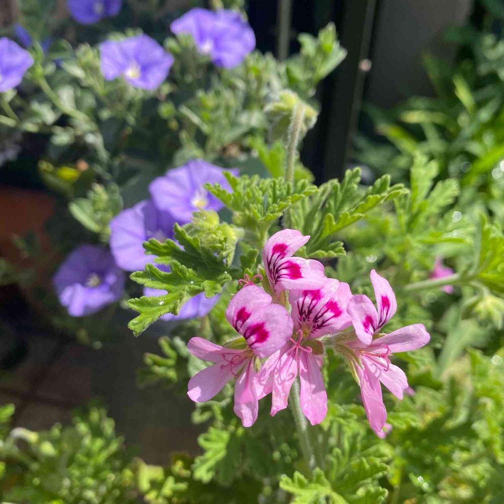 ローズゼラニウムも咲き始めました✨ハーブ調だけどバラのような葉っぱの香りも濃くなってきました(^^)