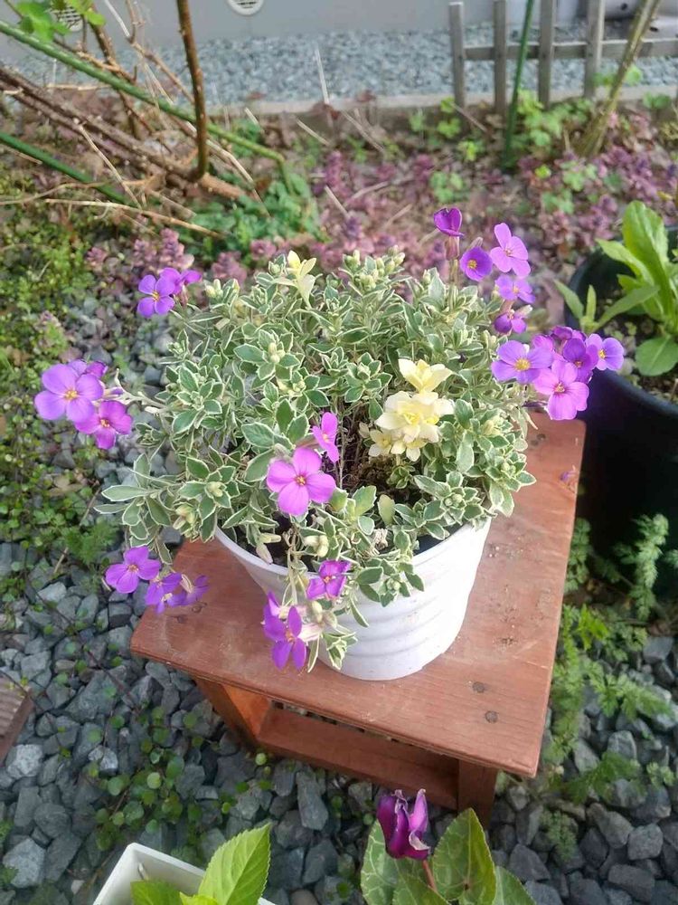 昔からあるオードリーというタグがついてたオーブリエチアが、夏越し、冬越しできてるので、去年はバリエガータラピスと、オーブリエチアの色違いを増やしました。