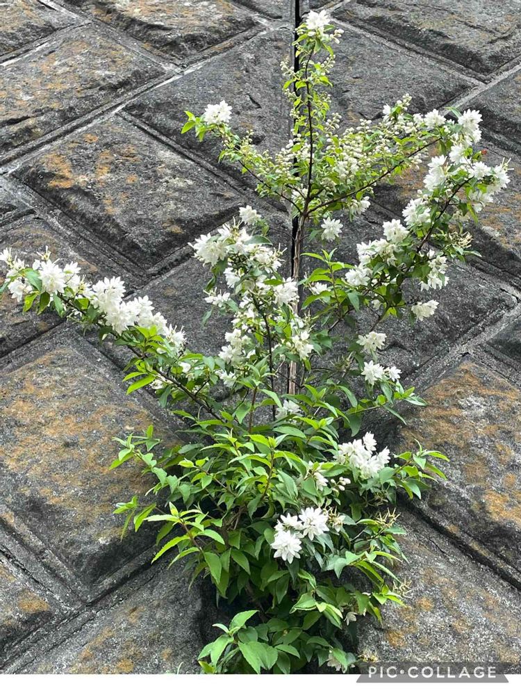 今日のお花 ウツギが、近所の崖ブロックの隙間から毎年切られても見事に咲きます🤍🤍