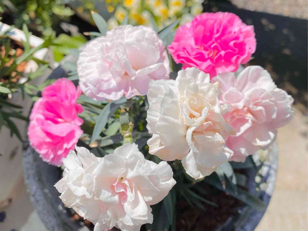 咲き始めはピンクでだんだん白くなる色変わりのカーネーション💕まだ小さい苗だから来年はもっと大きくなっていっぱい咲いて欲しいな🌼