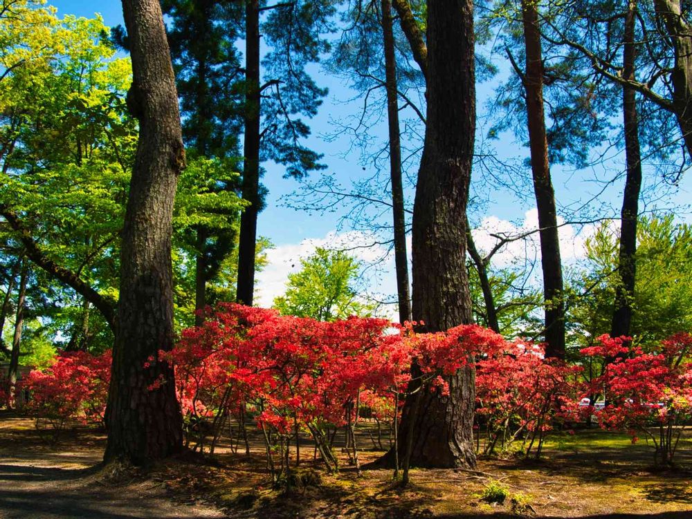 緑の中に、真っ赤なツツジ❣️