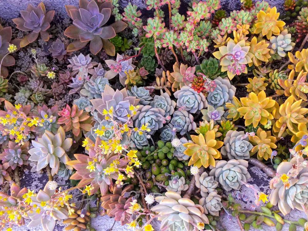 カラフルさも一段落 南側花壇の多肉ちゃん達😻💗💚💜💛🧡🤍❤️♥️