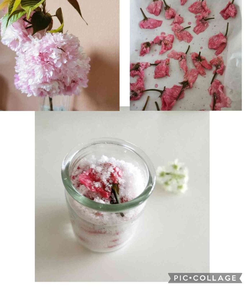 お庭の八重桜を枝ごといただきましたので花と葉っぱも塩漬けにしてみました🌸