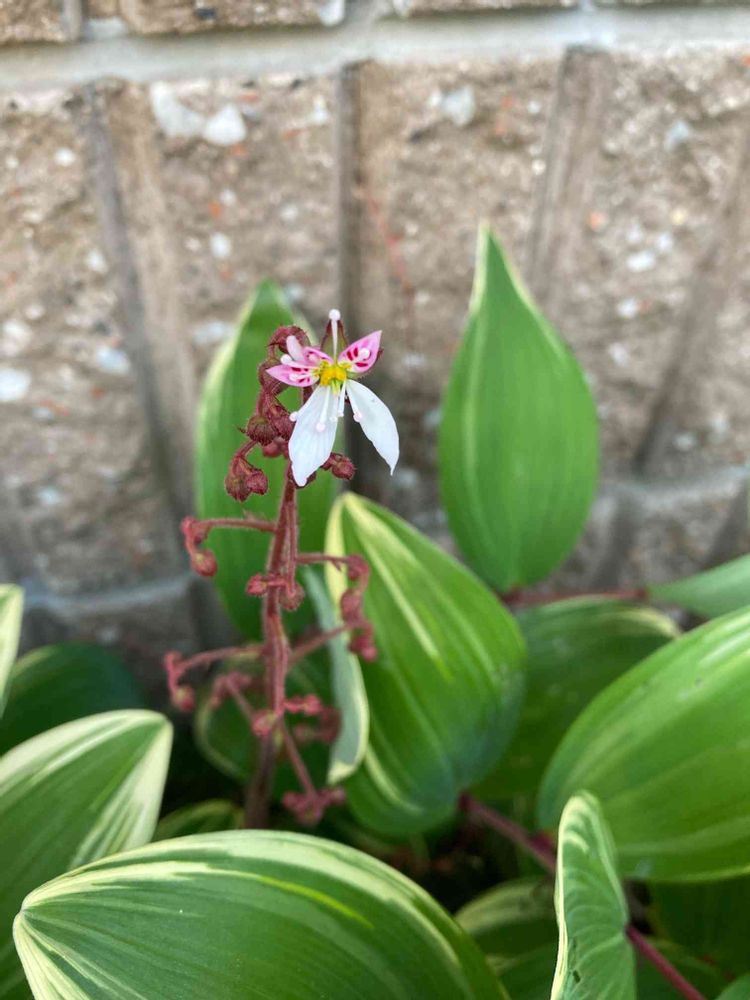 葉っぱはユキノシタではないですね。ナルコユリでしょうかねぇ?調べてみてください🙏