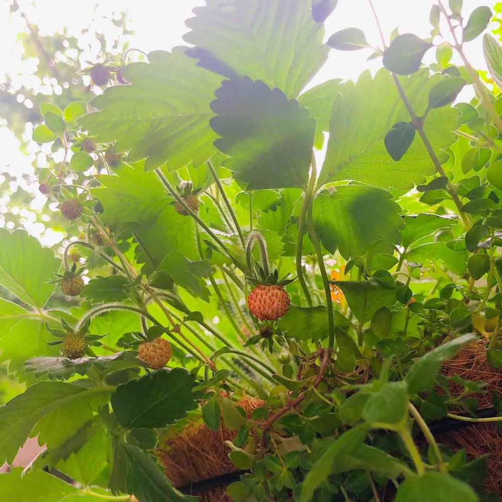 ワイルドストロベリーの実がほのかに色づいてきました😌