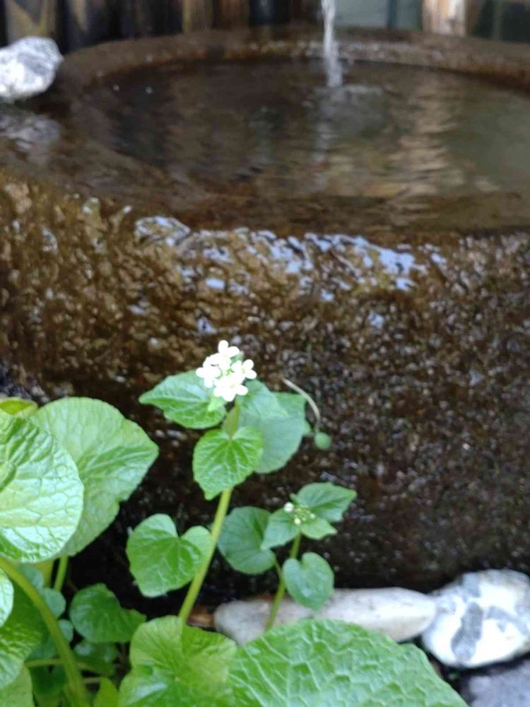 外の温泉水の柵には野ぶどうもあって、こちらは時期的に少し早くて綺麗な実のグラデーションは見られなかったのですが…。山葵の花も最近知りました。