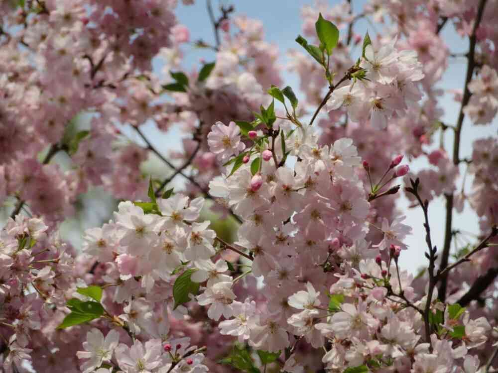 ぎっしり咲く見た目は“枝垂れない八重紅枝垂れ”といった感じで、けっこう目立ちます。
