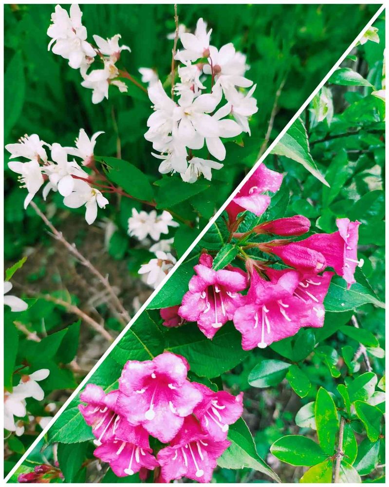 ウツギ、我が家の姫ウツギとオオベニウツギ。