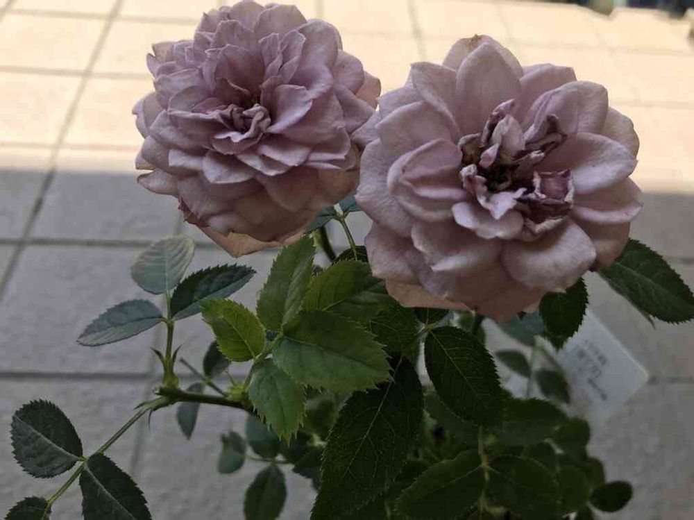 ミニバラで、くすんだパープル(ブルー)系、探してもなかなか出会えなかったのですが、小さな花屋さんの隅に置いてありました。